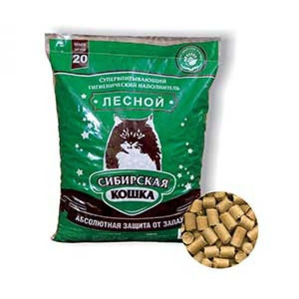 Сибирская кошка Лесной имеет форму крупных гранул. Гранулы из хвойных пород деревьев, обладают уникальной впитывающей способностью. Подходят для наполнения туалетов кошек всех пород, даже для длинношерстных, потому как гранулы, при попадании на них влаги, не пристают к шерсти животного. Легкий при переносе, удобный в применении – легко насыпать, легко убрать, также очень просто и вымыть лоток после наполнителя. Не имеет неприятного запаха ввиду экологичности состава.