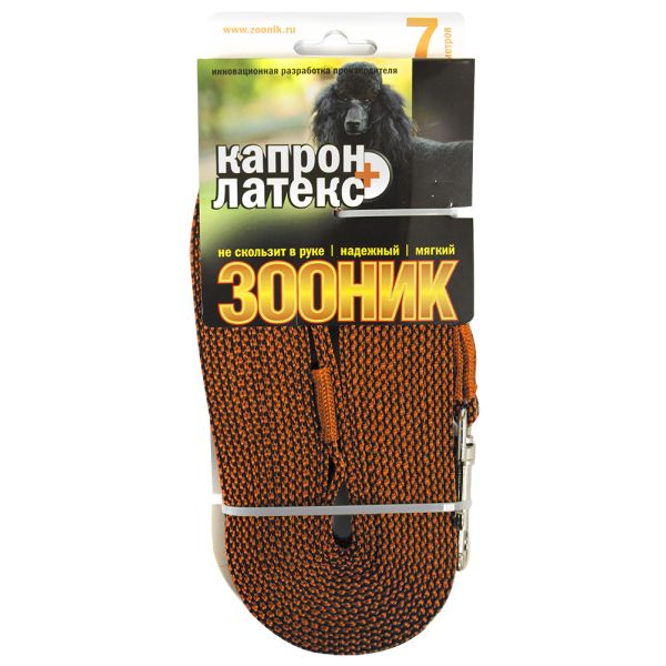 Поводок капроновый с двойной латексной нитью 7м* 15мм, ЗООНИК, оранжевый